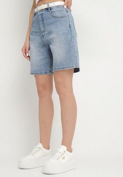 Niebieskie Jeansowe Szorty Bermudy z Wysokim Stanem Tenilorea