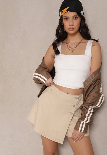 Beżowe Spódnico-Spodenki z Zakładką i Ozdobnymi Guzikami Finritia
