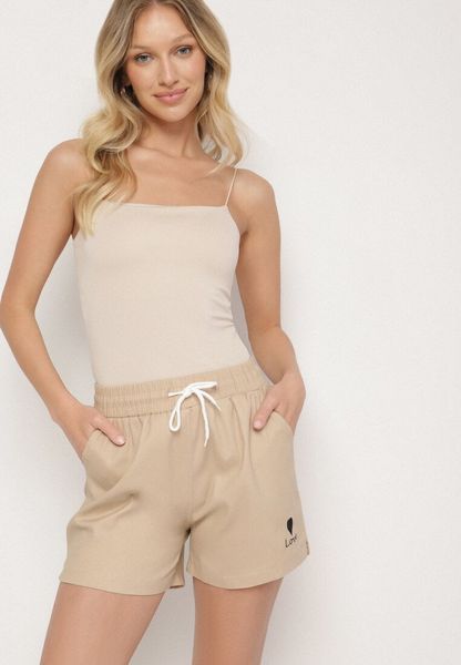 Beżowe Dresowe Szorty o Prostym Kroju z Wiązaniem i Kieszeniami Foladea