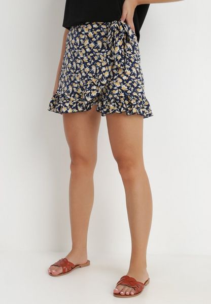 Szorty Hesadina o fasonie minispódniczki. Nogawki ukryte pod luźną falbanką. W pasie z tyłu marszczona gumka, która subtelnie podkreśla sylwetkę. Po boku pasek wiązany w kokardę. Wykonane z tkaniny zdobionej printem w kwiaty. Szorty imitujące spódniczkę to niezwykle komfortowy i kobiecy fason. Musisz je mieć w swojej garderobie!