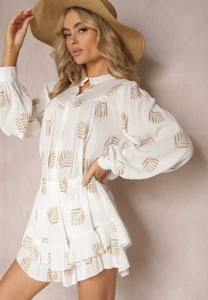 Białe Luźne Szorty Spódnica z Wiskozy Ozdobione Falbankami Senalia
