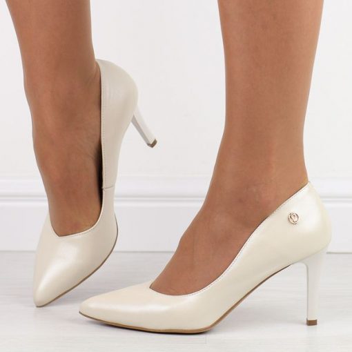 Beżowe perła Polskie szpilki damskie Prestige 2106