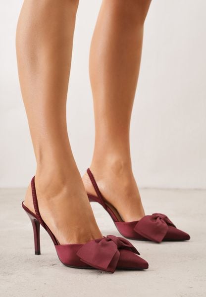Bordowe Satynowe Szpilki z Odkrytą Piętą i Ozdobną Kokardą Argatea