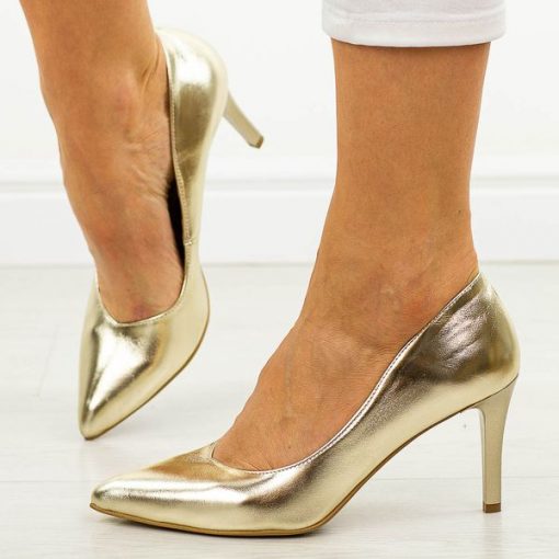 Złote Polskie szpilki damskie Prestige 2106b Skóra Lico