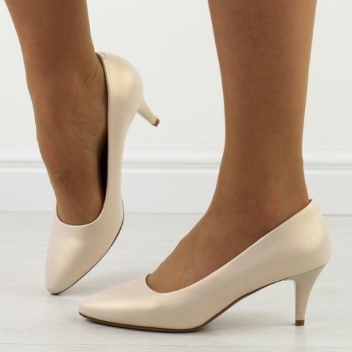 Beżowe czółenka damskie, niskie szpilki Sergio Leone 1379 Perła