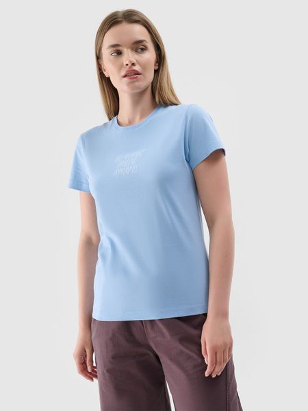 4F T-shirt slim z nadrukiem damski – niebieski XS