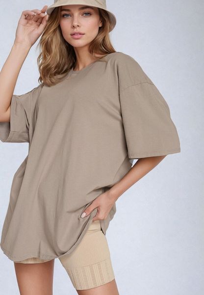 Beżowy Bawełniany T-shirt Koszulka z Krótkim Rękawem Bevima