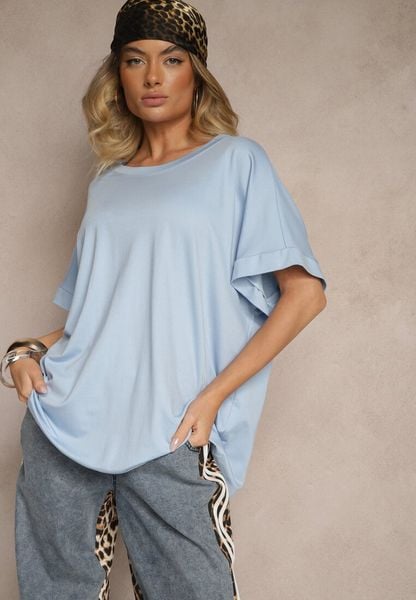 Niebieski T-shirt z Wiskozą o Fasonie Nietoperza Tanalitha