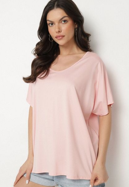 Jasnoróżowy T-shirt z Wiskozą o Kroju Nietoperza Liosma