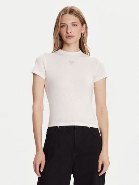 Guess T-Shirt W5BP07 KCGM2 Écru Slim Fit