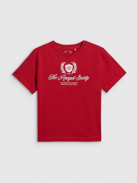 4F T-shirt boxy z nadrukiem damski – czerwony XS