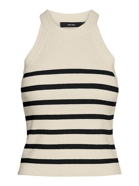 Vero Moda Top dzianinowy w kolorze beżowo-czarnym rozmiar: L