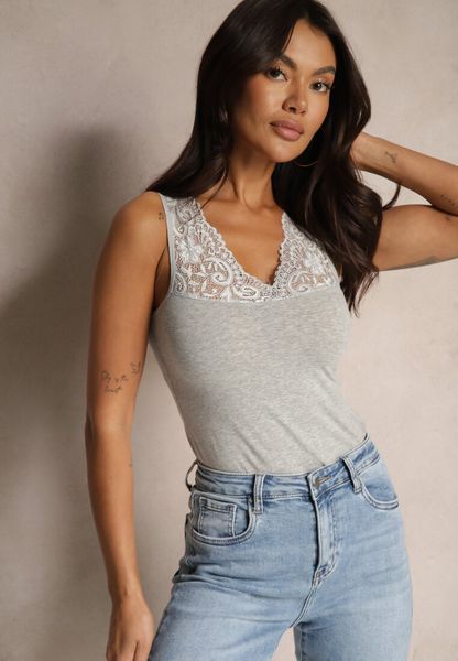 Ciemnoszary Bawełniany Top Ozdobiony Koronką Fariona