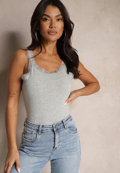 Ciemnoszary Bawełniany Top z Ozdobną Koronką Ariseth
