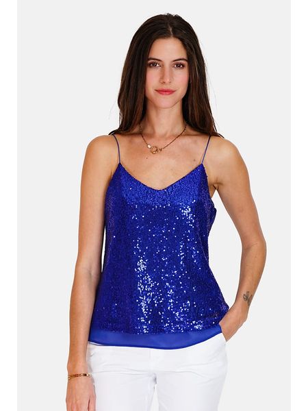 – powierzchnia: błyszcząca- ramiączka: wąskie – dekolt: V- detale: cekiny- krój: prosty- look: jednokolorowyWskazówka: Na metkach odzieży tej marki znajdują się rozmiary francuskie. Rozmiarówka została przez nas przeliczona. Podane do wyboru warianty rozmiarów odpowiadają standardowym europejskim rozmiarom konfekcji. Prosimy zapoznać się z zamieszczonym objaśnieniem rozmiarów: