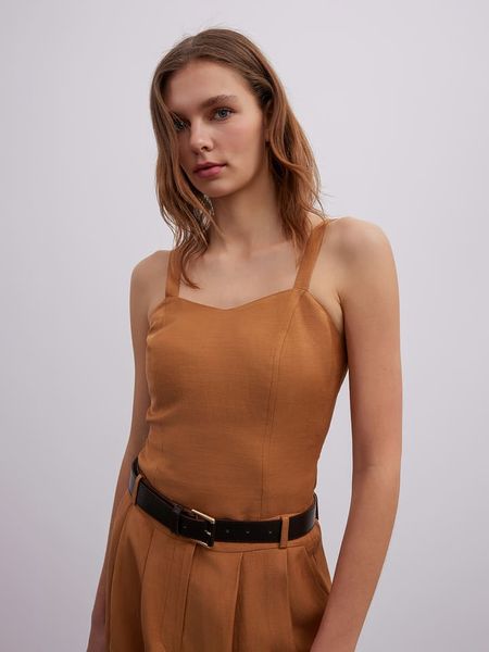 odzież damska bgn topy bgn topy bez ramiączek odzież damska limango.pl topy bez rękawów brązowe topy topy ze sklepu limango.pl topy bez kołnierzyka