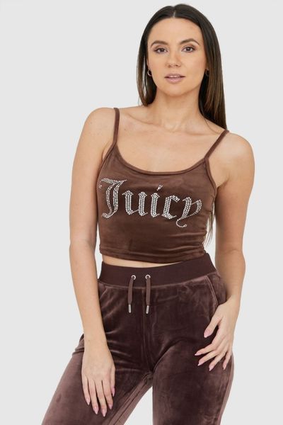 JUICY COUTURE Brązowy welurowy top damski z błyszczącym logo, Rozmiar L