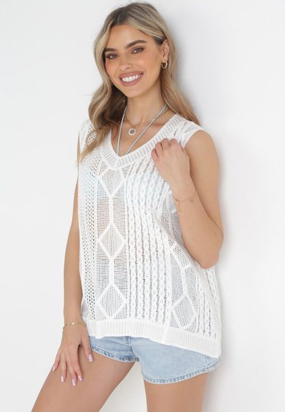 Biały Dzianinowy Top w Stylu Kamizelki z Bawełny Blancita