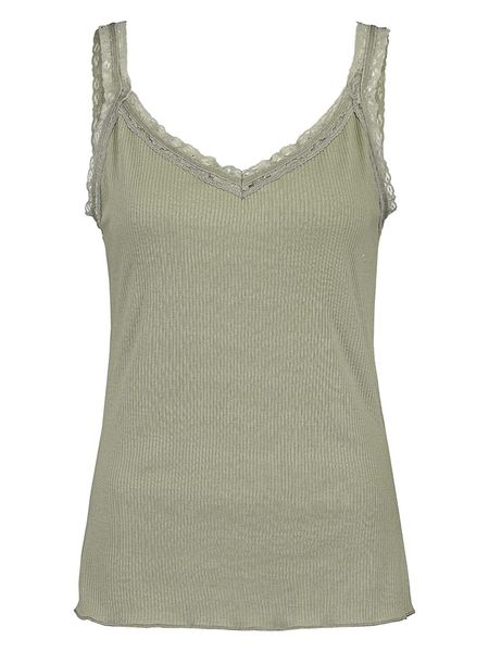 – ramiączka: szerokie- dekolt: V- wzór splotu: ścisły- detale: koronka- krój: prosty- look: jednokolorowy