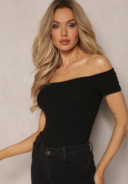 Czarny Bawełniany T-shirt Top z Hiszpańskim Dekoltem Ertalissa
