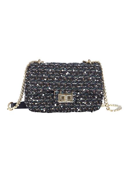 – materiał: tkanina- powierzchnia: uwydatniona faktura- długi pasek przez ramię: łańcuszek- zapięcie: przekręcane- kieszenie wewnętrzne: różne- tekstylna podszewka: tak