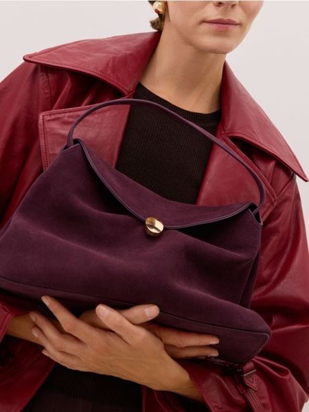 Torebka o prostej formie, wykonana z naturalnego zamszu.