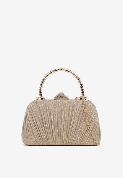 Złota Torebka Kopertówka z Brokatem z Łańcuszkiem i Uchwytem Zarletta