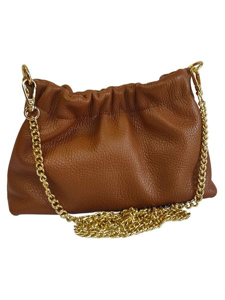 – materiał: skóra- długi pasek przez ramię: łańcuszek- zapięcie: magnetyczne- kieszenie wewnętrzne: 1 kieszeń na zamek- tekstylna podszewka: tak- wyprodukowano we Włoszech