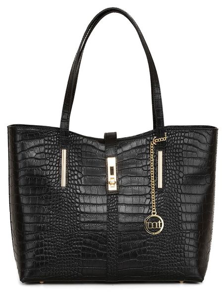– materiał: skóra- powierzchnia: o fakturze krokodylej skóry- krótki pasek na ramię: 2- zapięcie: suwak- kieszenie wewnętrzne: 1 kieszeń na zamek- detale: zawieszka- tekstylna podszewka: tak- wyprodukowano we Włoszech