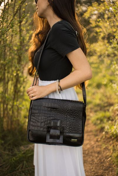 Listonoszka skórzana SHE 694w czarny krokodyl