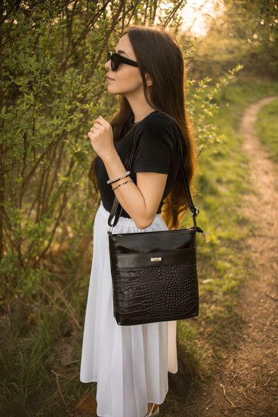 Listonoszka skórzana SHE 696w czarny krokodyl