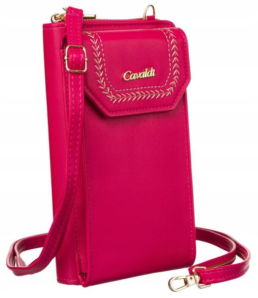 Torebko-portfel został uszyty z wysokogatunkowej eko skóry. We wnętrzu torebki znajdują się praktyczne przegródki na karty. Na froncie praktyczna kieszonka na telefon zapinana na zatrzask. Wraz z torebko-portfelem odpinany pasek z regulacją długości.