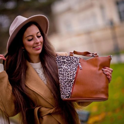 Shopperka skórzana DAN-A 705 camelowa jasna panterka