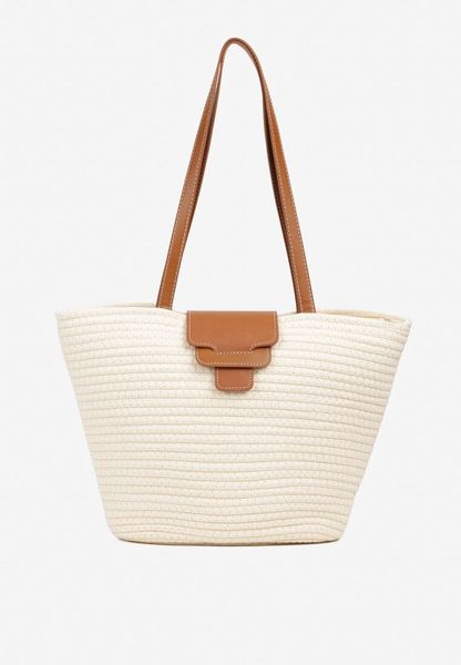 Jasnobeżowa Duża Pleciona Torebka Wykończona Rączkami z Imitacji Skóry Carpinea