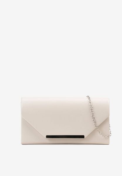 Biała Torebka Kopertówka Ozdobiona Odczepianym Łańcuszkiem Tinrinna