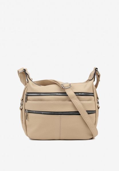 Jasnobeżowa Torebka w Typie Listonoszki z Suwakami i Paskiem Nanisela