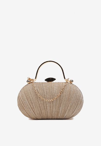 Złota Torebka Kopertówka Zdobiona Brokatem z Dołączonym Łańcuszkowym Paskiem Emedi