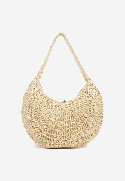Beżowa Torebka na Ramię z Plecionki w Kształcie Półksiężyca Gelora