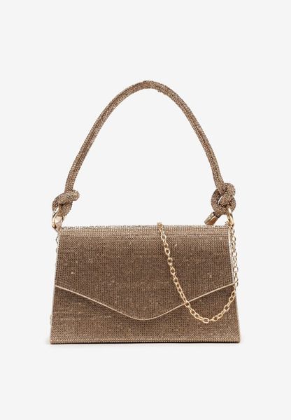 Złota Cyrkoniowa Torebka Kopertówka Zapinana na Magnes z Rączką i Łańcuszkiem Alatia