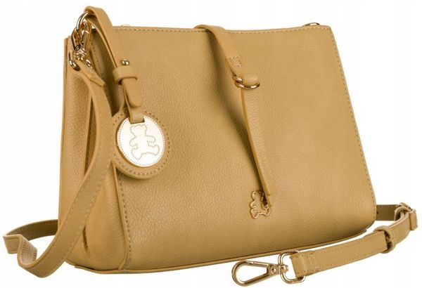 Odszyta z wysokogatunkowej skóry ekologicznej o ziarnistej fakturze. Zamykana dwoma zamkami magnetycznymi, a także zamkiem błyskawicznym. Ozdobiona złotym logo marki i stylową zawieszką. Wyposażona w 2 kieszenie wewnętrzne i 1 zewnętrzną.