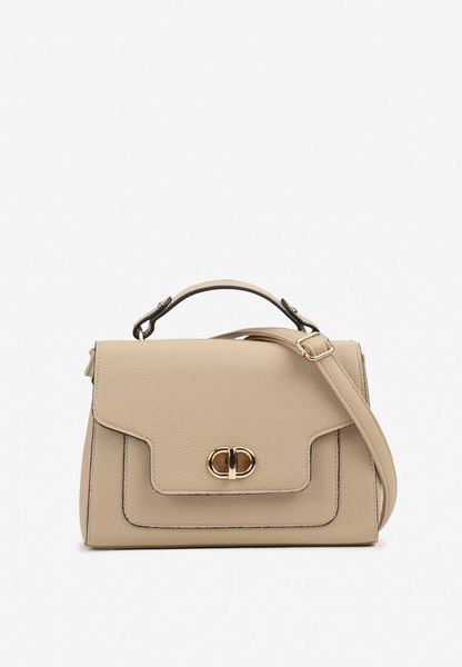 Jasnobeżowa Torebka Typu Listonoszka z Rączką i Ozdobną Klapą Monevia