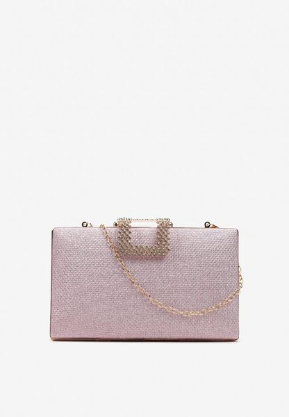 Prostokątna torebka Hulicca z odpinanym łańcuszkiem. Jednokomorowa z ozdobnym zapięciem z cyrkoniami. Wykonana z materiału z brokatowym połyskiem, idealna na wielkie wyjścia!