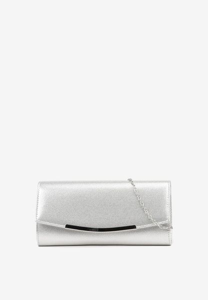 Srebrna Metaliczna Torebka Kopertówka z Łańcuszkiem i Asymetryczną Klapą Floreve