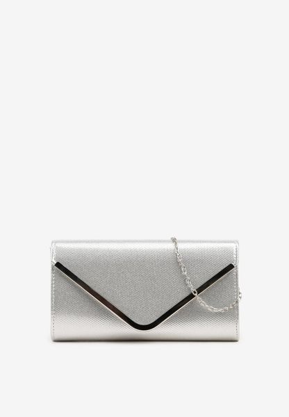 Srebrna Metaliczna Torebka Kopertówka z Łańcuszkiem i Asymetryczną Klapą Floreve