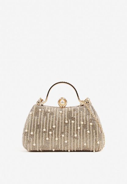 Złota Cyrkoniowa Torebka Koktajlowa z Rączką Feselia