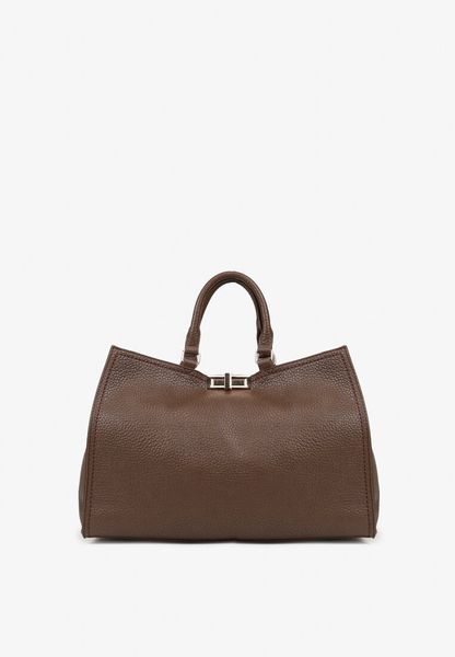 Brązowa Duża Torebka Kuferek z Dwoma Rączkami i Metaliczną Klamrą Nalavera
