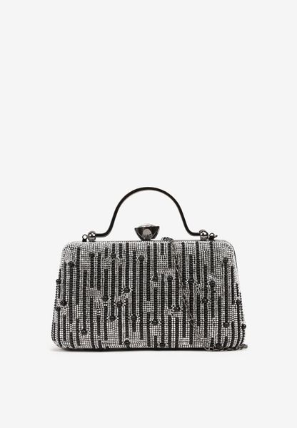 Czarna Torebka Kopertówka Ozdobiona Perełkami i Cyrkoniami Fessurea