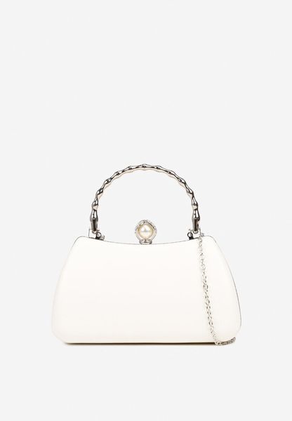 Biała Torebka Typu Kopertówka z Ozdobną Rączką Fesiria