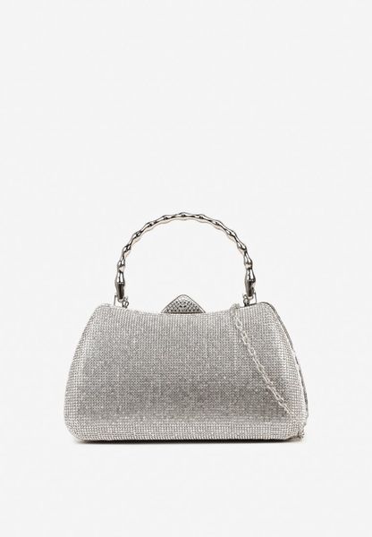 Srebrna Koktajlowa Cyrkoniowa Torebka z Łańcuszkiem i Uchwytem Latavea