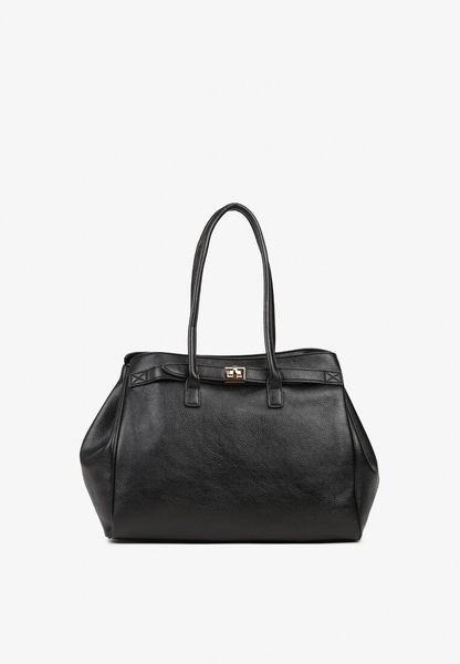 Czarna Torebka Shopper z Dwoma Rączkami Ozdobiona Paskiem z Klamrą Remisse